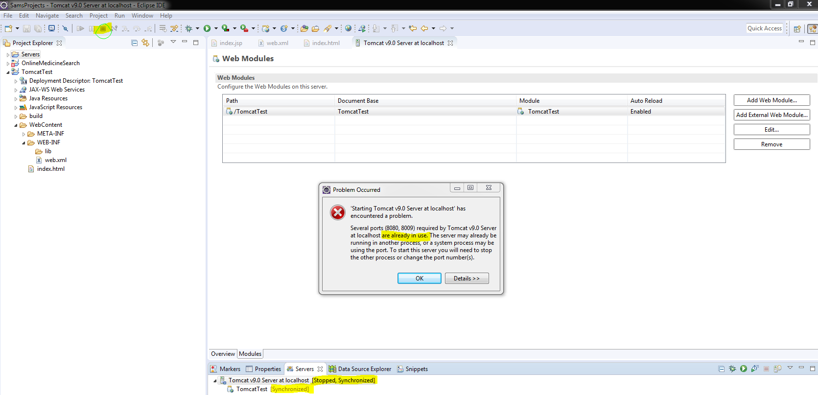 eclipse如何配置tomcat(包含没有Server解决办法)_eden00的博客-CSDN博客 from imgconvert.csdnimg.cn I changed 8005 port in. To start this server you will need to stop the other process or change the port number(s). By default embedded tomcat server runs on 8080 port in sts. Several ports (8080, 8081, 8082) required by tomcat server at localhost are already in use. The port may already be in use or the connector may be misconfigured. I installed netbeans and tomcat server using windows installer and i try to configure tomcat server in netbeans and then i run the project and it will show an error like as shown above please help me for this problem. I suspect something else is running on port 8080. Unfortunately, you can't seem to access the web interface for tomcat even though it's started and netbeans throws this error: