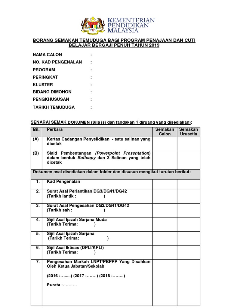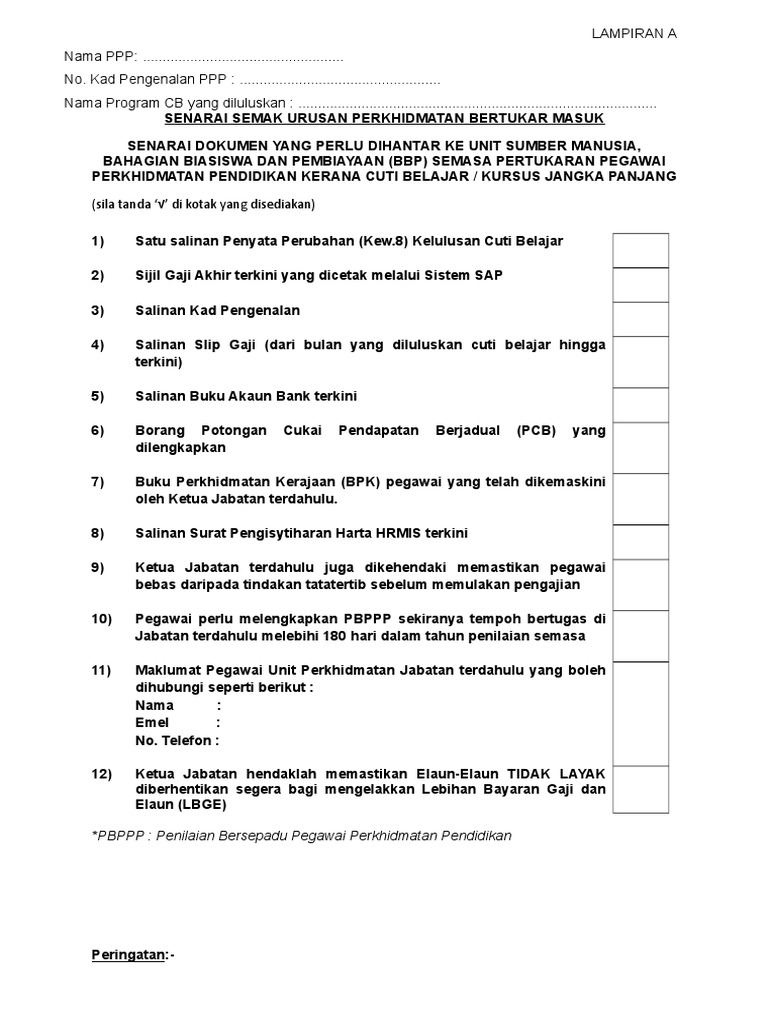 Related : Borang Senarai Semak Pbppp : Taklimat Operasi Pelaksanaan Pbppp Tahun Bahagian Pembangunan Dan Penilaian Kompetensi Pdf Free Download - Borang senarai semak permohonan pemeriksaan keselamatan kebakaran..