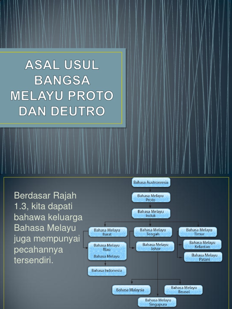 Bahasa Kebangsaan from image.slidesharecdn.com Ia menyebut jika asal usul nenek moyang bangsa indonesia berasal dari semenanjung asia tenggara. Suku sambas dan islam itu ibarat sebuah koin, sisi depan dan sisi belakang yang tidak bisa terpisahkan. Oleh karena itulah orang rimba berupaya menjalin hubungan baik dengan pihak versi lain mitos asal usul orang rimba berkaitan dengan sebuah cerita mengenai putri pinang masak. Asal usul nenek moyang bangsa indonesia adalah bangsa dari daratan yunan di china selatan. Menurut wan hashim, kajian mengenai asal usul melayu di malaysia bukan setakat bersumberkan daripada satu kaedah, tetapi menggabungkan penemuan arkeologi, antropologi daripada aspek budaya dan bahasa linguistik serta kajian dna. Tak kira apa perkara sekalipun di dalam dunia ini, ia semestinya dimulakan dengan langkah pertama. Dikenali juga sebagai orang muntah lembu, orang kalur telah melalui pelbagai proses transformasi yang melihatkan perubahan fungsi dan status mereka di dalam sejarah institusi kesultanan melayu. Usul menunjukkan asal, bahasa menunjukkan bangsa.